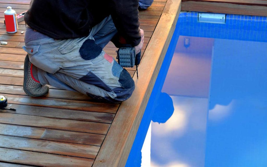 يتم تغيير البلاط التالف أو إعادة تبطين المسبح بالكامل، كما يمكن استخدام دهانات إيبوكسي مقاومة للماء تمنح المسبح مظهرًا عصريًا ولامعًا.