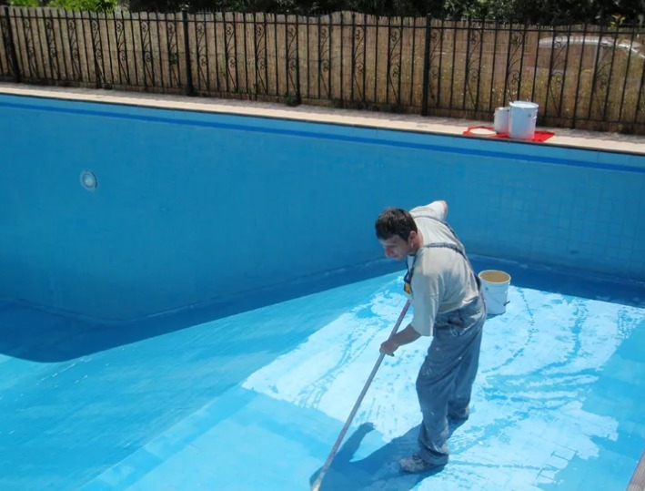 يتم فحص الأسطح الداخلية للمسبح (مثل الجدران والأرضيات) للتحقق من وجود أي تشققات أو تسريبات. إذا تم اكتشاف أي تلف، يتم استخدام مواد خاصة لإصلاح تلك التسريبات.
