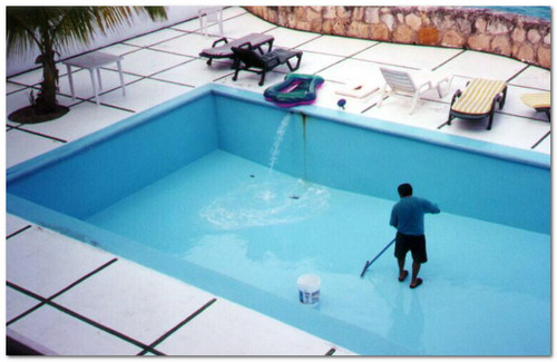 قد تحدث تسريبات في جدران أو قاعدة المسبح نتيجة مرور الوقت أو بسبب الاستخدام المكثف. ترميم هذه التسريبات يسهم في الحفاظ على مستوى المياه ويحمي هيكل المسبح من المزيد من الأضرار. - إعادة طلاء الأسطح: